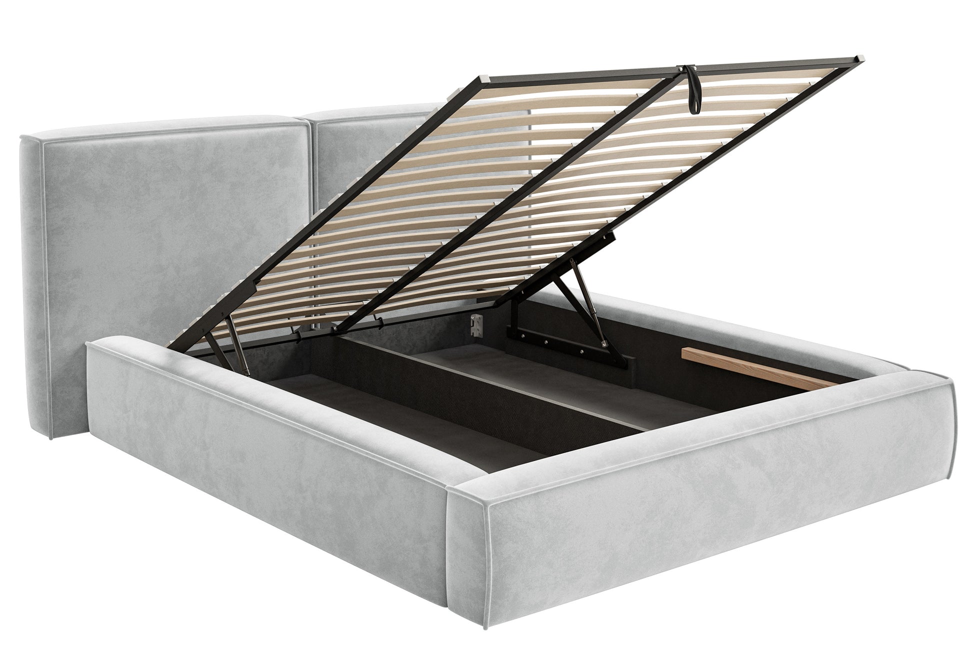 Polsterbett 140x200 cm Tilves mit Stauraum, Metallrahmen, hellgrauer Samt
