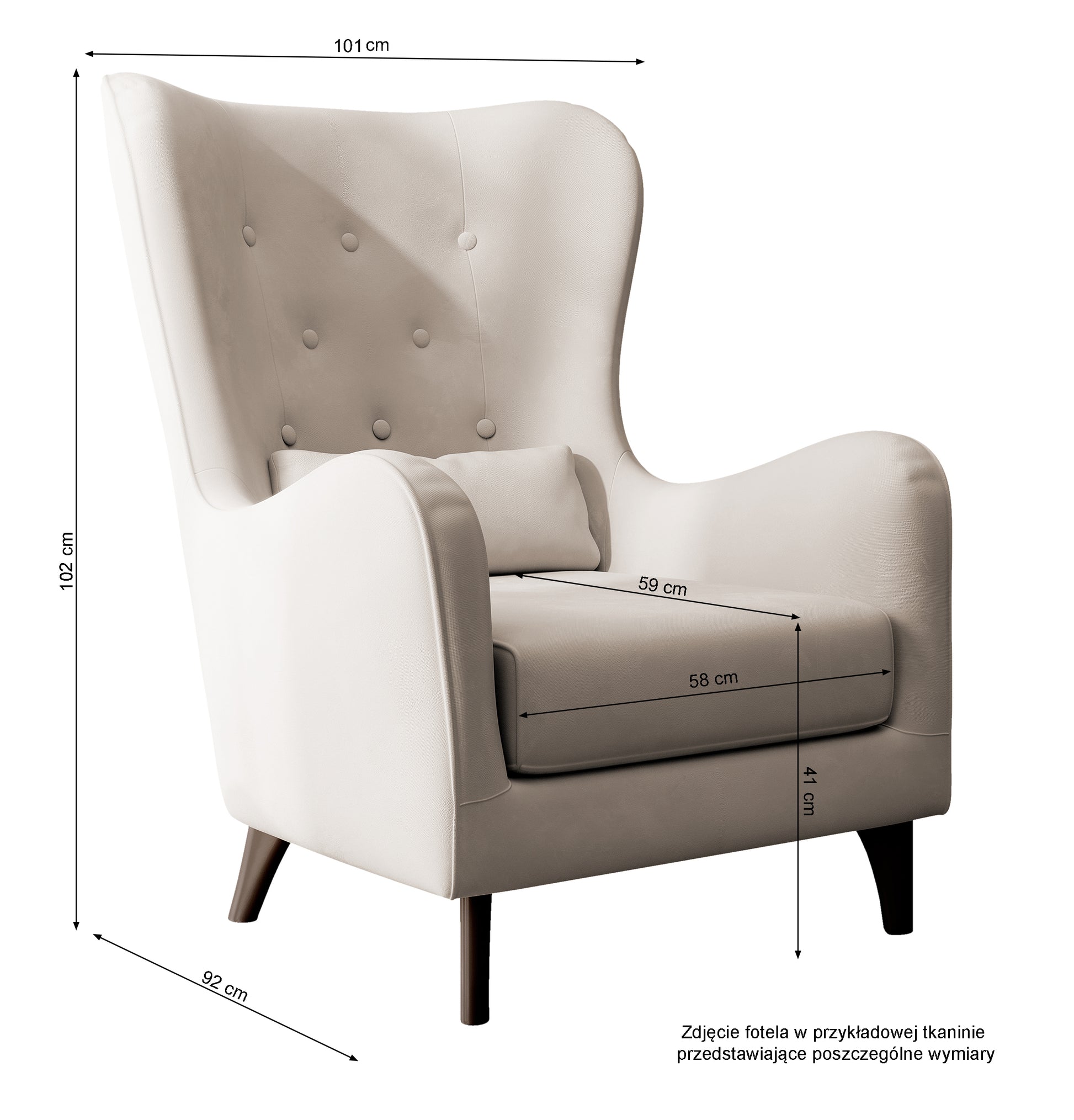 Der hohe Komfort, den du erleben kannst, wird dafür sorgen, dass du dich endlich entspannt fühlst. Das Möbelstück steht auf Holzbeinen für Stabilität. Der geräumige Korpus ist mit hohem Rücken und praktischen Armlehnen ausgestattet. Es ist eine hervorragende Ergänzung, um dem Raum Funktionalität zu verleihen und einen idealen Ort zum Entspannen zu schaffen. Um den besten Effekt der Stoffspannung zu erreichen, wurde während des Produktionsprozesses ein Reißverschluss auf der Rückseite des Sessels eingenäht, der in der Mitte verborgen hinter einer Borte sitzt. Solche Liebe zum Detail garantiert eine hohe Verarbeitungsqualität und sorgt vor allem dafür, dass Calmino über Jahre hinweg dienen wird.