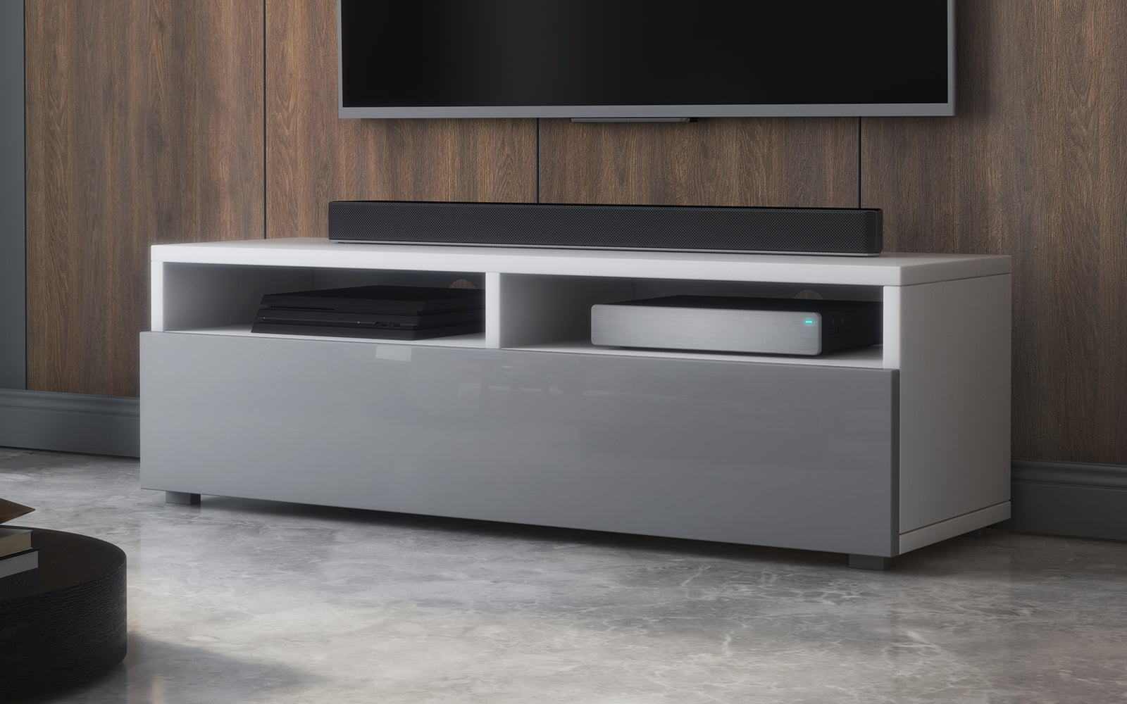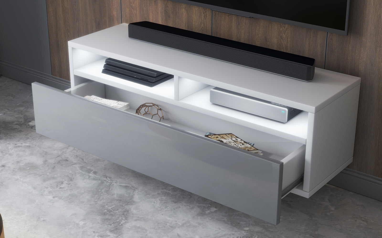 TV-Schrank mit Schublade Rednaw 100 cm Weiß matt / Grau glänzend mit Beleuchtung